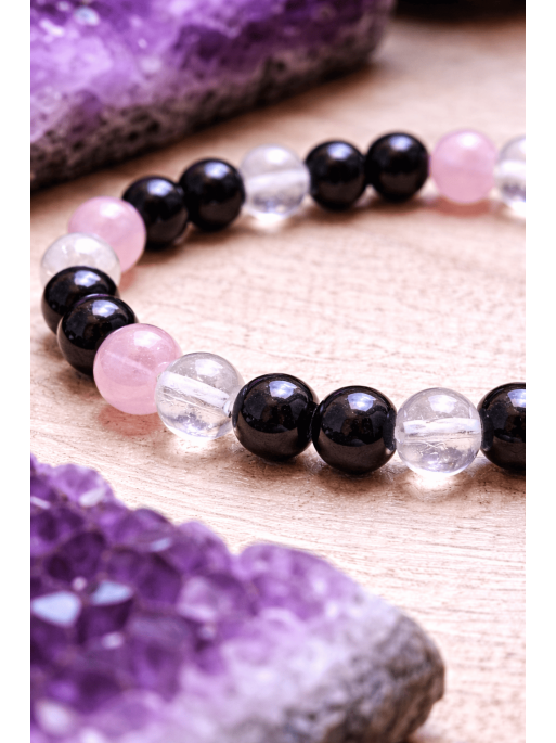 La Pulsera Brisa Curativa del Amor ha sido creada como un amuleto suave y poderoso que envuelve tu energía con calma, protección y amor consciente. Elaborada con bolitas de 6 mm de Cuarzo Rosa, Turmalina Negra y Cuarzo Transparente, esta pulsera equilibra el corazón, protege el campo energético y amplifica las intenciones de amor verdadero.