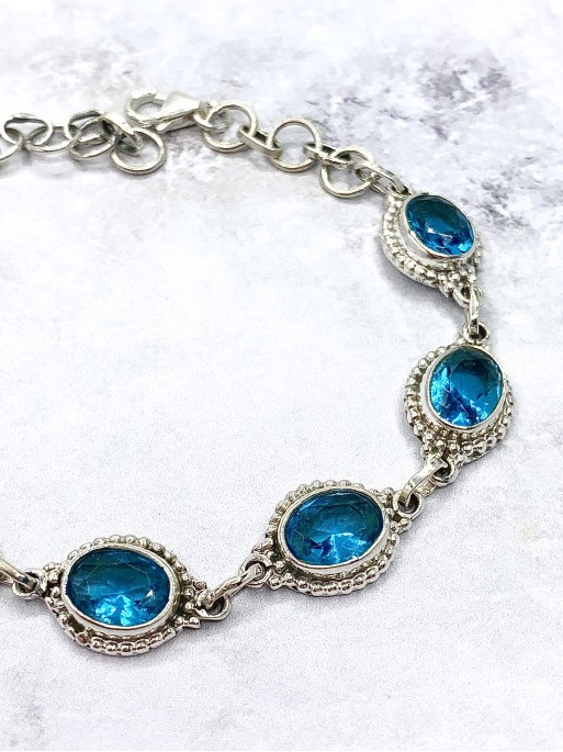 Carolina de Topacio azul es una pulsera muy exótica. Su color azul intenso es impresionante, y la piedra es única y poco común. Puedes combinarla con otras pulseras o llevarla en solitario, luce genial de las dos maneras. Si te encanta tanto como a nosotras, puedes completar el look de collar y anillo de Topacio azul, te enamorará!