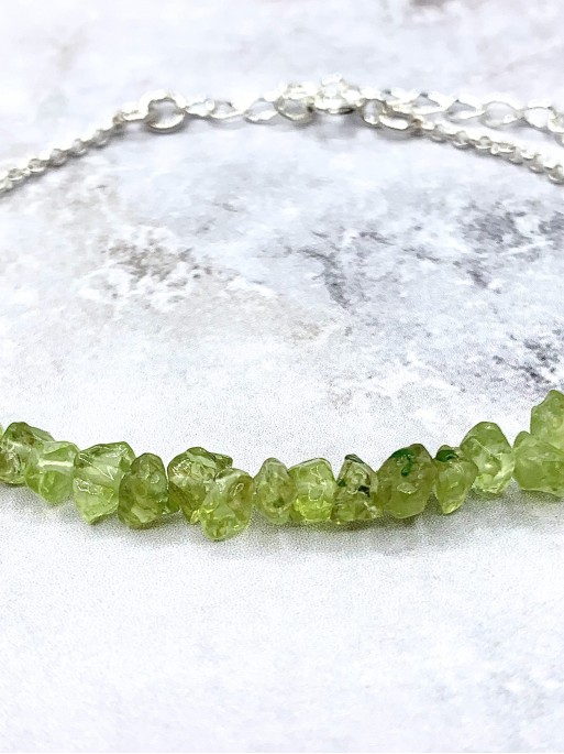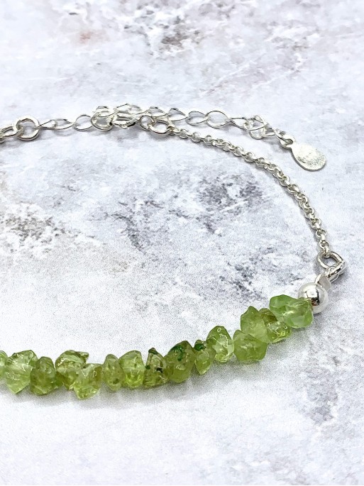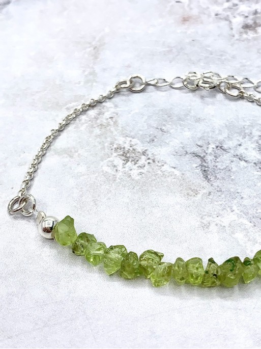 Pulsera 'Damini' de Olivina (Peridoto). Material: plata de ley. Tamaño ajustable: 14 cm + 5 cm extensor.