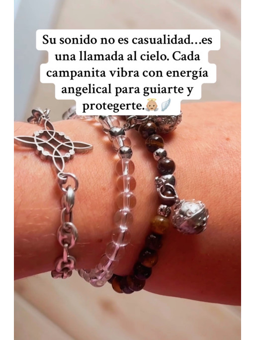 El llamador de ángeles, realizado en plata de ley, emite un suave sonido armonioso que, según la tradición, llama a tu ángel guardián para que te proteja, te guíe y te llene de serenidad. Juntos, crean un escudo energético de luz, fuerza y equilibrio espiritual.