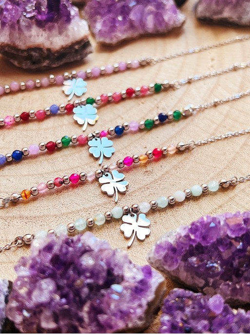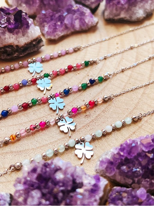 Tobillera ‘Nahali‘ de piedra natural variada. Material: Acero Inoxidable (316L).