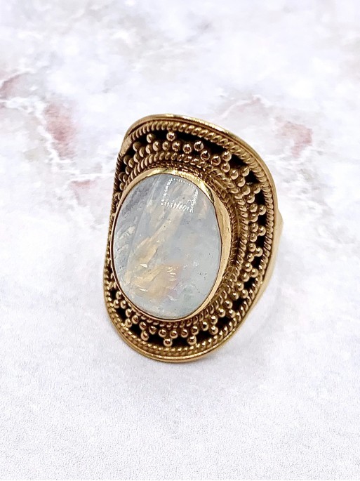 Anillo 'Carolina' oro 24k y Piedra luna