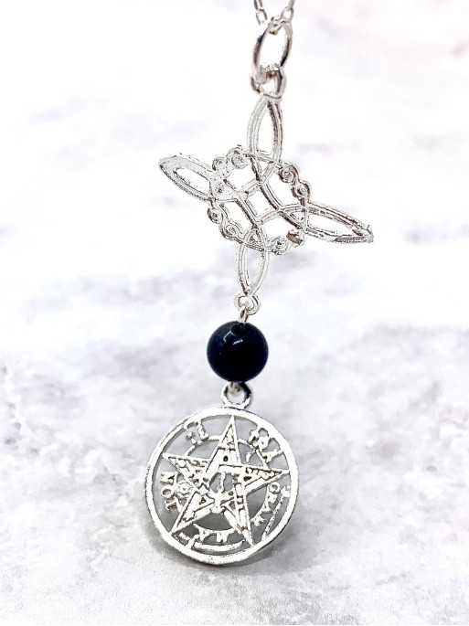 Collar triple protección de plata: Nudo de Bruja y Tetragramatón con Turmalina