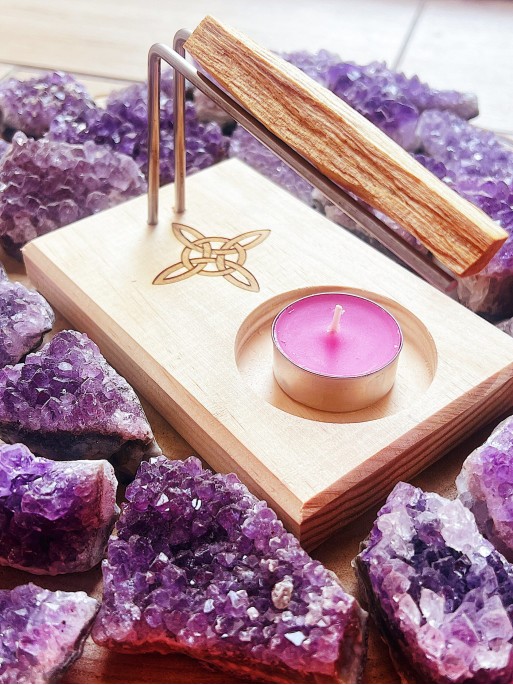 Un quemador de palo santo con vela sirve para varios propósitos, combinando los aspectos prácticos de quemar palo santo de manera controlada y segura, con los beneficios espirituales y aromáticos asociados al uso de esta madera sagrada. Aquí te detallo algunos de sus usos y beneficios principales: